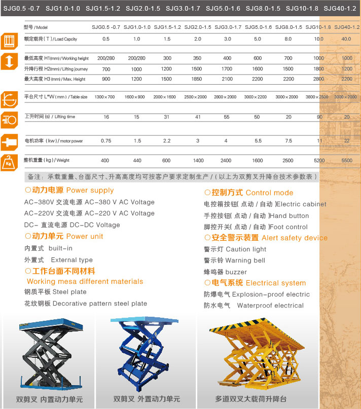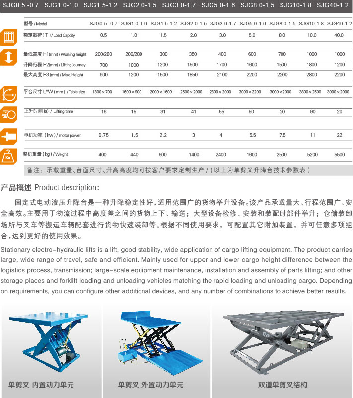 固定式電動液壓升降臺是一種升降穩(wěn)定性好,適用范圍廣的貨物舉升設(shè)備。該產(chǎn)品承載量大、行程范圍廣、安全高效。主要用于物流過程中高度差之間的貨物上下、輸送;大型設(shè)備檢修、安裝和裝配時部件舉升;倉儲裝卸場所與叉車等搬運(yùn)車輛配套進(jìn)行貨物快速裝卸等。根據(jù)不同使用要求,可配置其它附加裝置,并可任意多項(xiàng)組合,達(dá)到更好的使用效果。